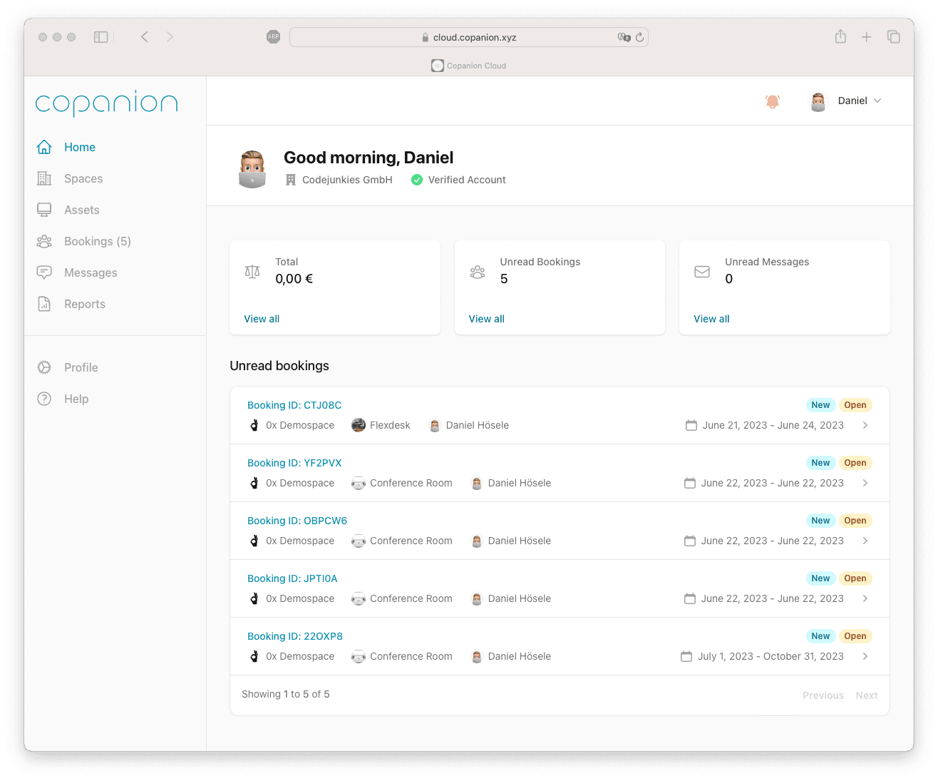 The Copanion dashboard provides a centralized hub where hosts can conveniently monitor unread messages, track new bookings and access other important information, all in one place.